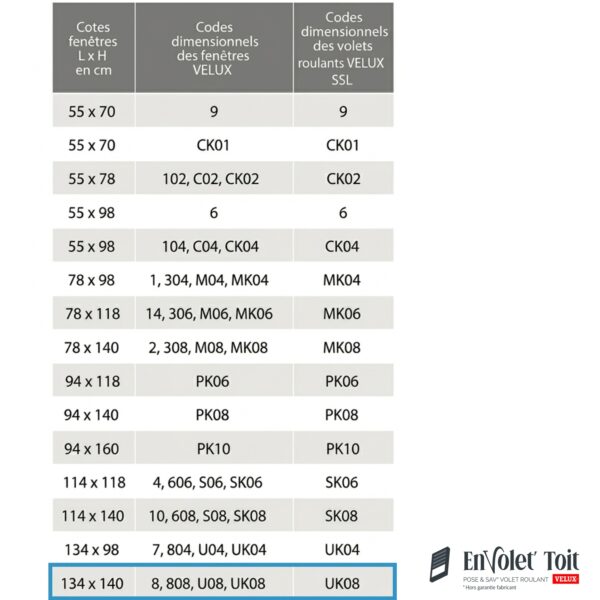| Compatible avec les fenêtres de marque VELUX | VELUX | VELUX | VELUX | VELUX |