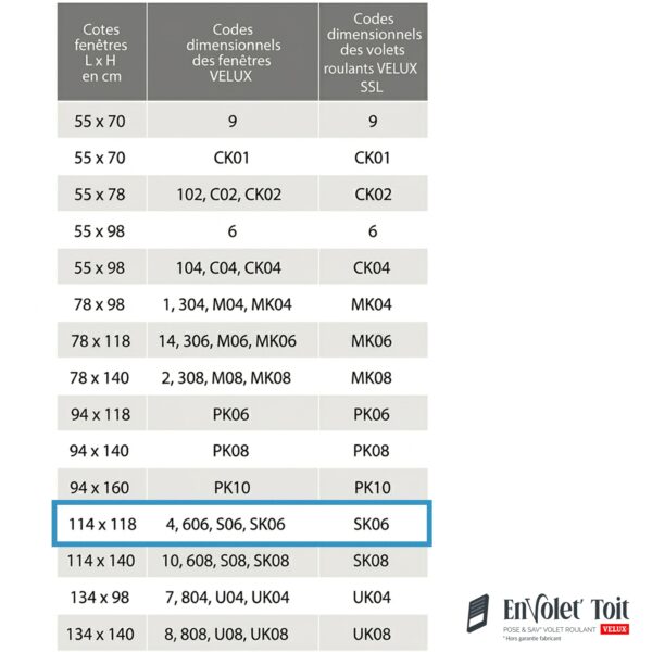 | Compatible avec les fenêtres de marque VELUX | VELUX | VELUX | VELUX | VELUX |